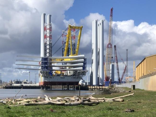 Able Seaton Port, Hartlepool is acting as a marshalling and construction hub for the 277 giant wind turbines to be used in the Dogger Bank wind farms. Photo David Robinson / geograph.org.uk (CC BY-SA 2.0).