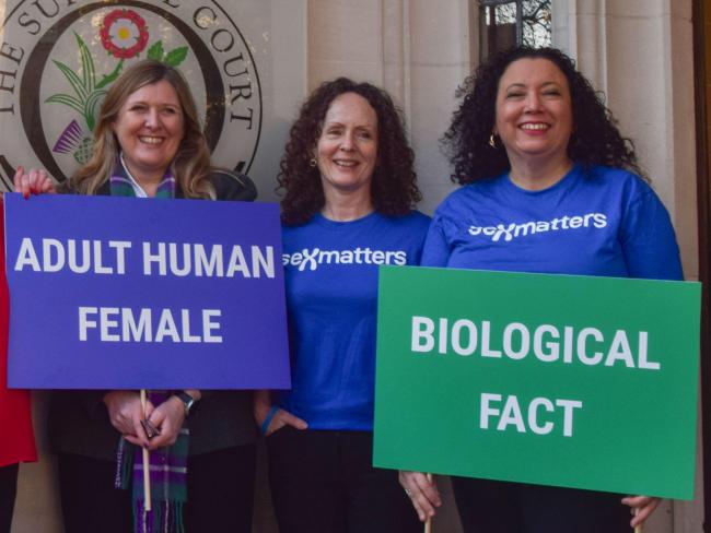 Campaigners from Sex Matters and For Women Scotland outside the Supreme Court, November 2024. Areas of the NHS and unions are finding hard to accept the ruling. Photo Vuk Valcic /Alamy Stock Photo.
