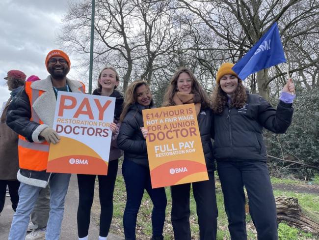 Doctors picketing at Whipps Cross University Hospital, London, during an earlier round of industrial action. Photo Workers.