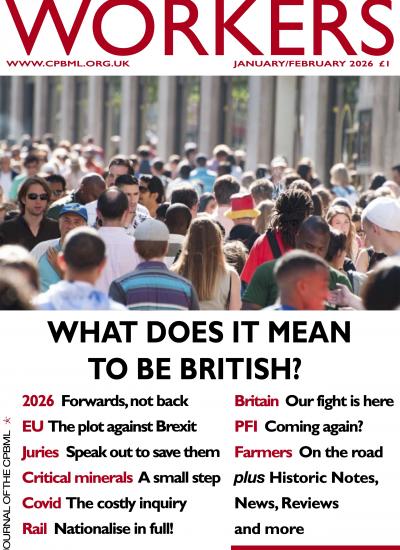 Take out a subscription, or renew an existing one. One year’s supply of Workers magazine (six issues), delivered direct to you – including postage. UK addresses only. For prices for subscriptions to other countries, please email info@cpbml.org.uk.
